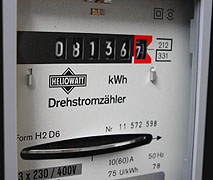 Was aber macht unser Elektron, wenn tatsächlich einmal alle Verbraucher im gesamten Haushalt (ja, sogar der Kühlschrank und die Heizung) ausgeschaltet sein sollten? Wo soll oder will es hin? Einen Stromspeicher, bestehend aus teuren, verhältnismäßig kurzlebigen Akkus wollten wir nicht. Unser Elektron hat absolut nichts im Hausnetz, wo es gebraucht werden könnte. …bis auf den Stromzähler! Grob gibt es zwei Arten von Stromzählern: Es gibt digitale Stromzähler und ältere analoge Stromzähler, sog. Ferraris Zähler. Ferraris Zähler sind die mit dem horizontalen Rädchen, welches sich je nach Stromverbrauch schneller oder langsamer dreht. Digitale Stromzähler haben stattdessen ein Display. Kommt unser Elektron an einem analogen Ferraris Stromzähler an, so kann es diesen entweder bremsen, oder, sofern gar nichts im Haushalt verbraucht wird, sogar „überspringen“. Überspringen bedeutet: es wird ins öffentliche Netz eingespeist und das Zählerrad dreht sich sogar rückwärts. Ein digitaler Stromzähler lässt unser Elektron auch zurück ins öffentliche Netz, aber leider kann ein digitaler Stromzähler nicht rückwärts laufen/zählen. Unter der Voraussetzung, dass also tatsächlich im gesamten Haushalt kein Kühlschrank, keine Gefriertruhe oder eine Heizung Strom verbraucht und der Haushalt einen digitalen Stromzähler hat, verschenken wir unser Elektron unserem Energieversorger. Im Falle eines analogen Ferraris Zählers dreht sich das Rad genauso schnell rückwärts, wie vorwärts pro KW/h. Genauso schnell bedeutet: Wir erhalten als Einspeisvergütung genau den selben Geldwert, wie wir selbst für die KW/h bezahlen. Ja, wirklich.