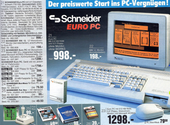 Auf diesem, meinem allerersten PC lief damals ein MS-DOS 3.3 mit dem ich zunächst nicht mehr anstellen konnte, als mir selbst GW-Basic beizubringen (später bekannt als QBasic). Der Monitor (13“) war damals tiefer, als er breit oder hoch war. Aufgrund der Bauweise hielten viele meiner Freunde das Maschinchen zuerst für einen Amiga oder einen Commodore 64. Es dauerte allerdings nicht sehr lange, bis ich einen x286 (16 MHz) abstauben konnte, der sogar später eine 40 MB Festplatte bekam.