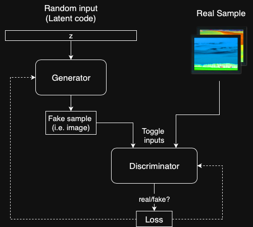 Die Grundkomponenten jeder GAN sind zwei neuronale Netze - ein Generator, der neue Samples von Grund auf neu synthetisiert, und ein Diskriminator, der Samples sowohl aus den Trainingsdaten als auch aus dem Generatorausgang entnimmt und vorhersagt, ob sie "echt" oder "falsch" sind.