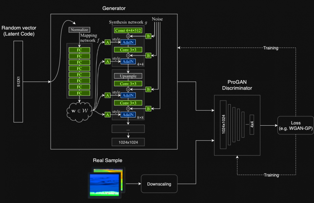 Der neue Generator enthält mehrere Ergänzungen zu den Generatoren des ProGAN:
