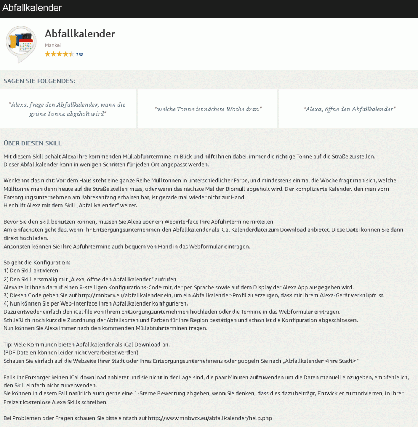 ∎ Abfallkalender als .ICS für Alexa oder Google home